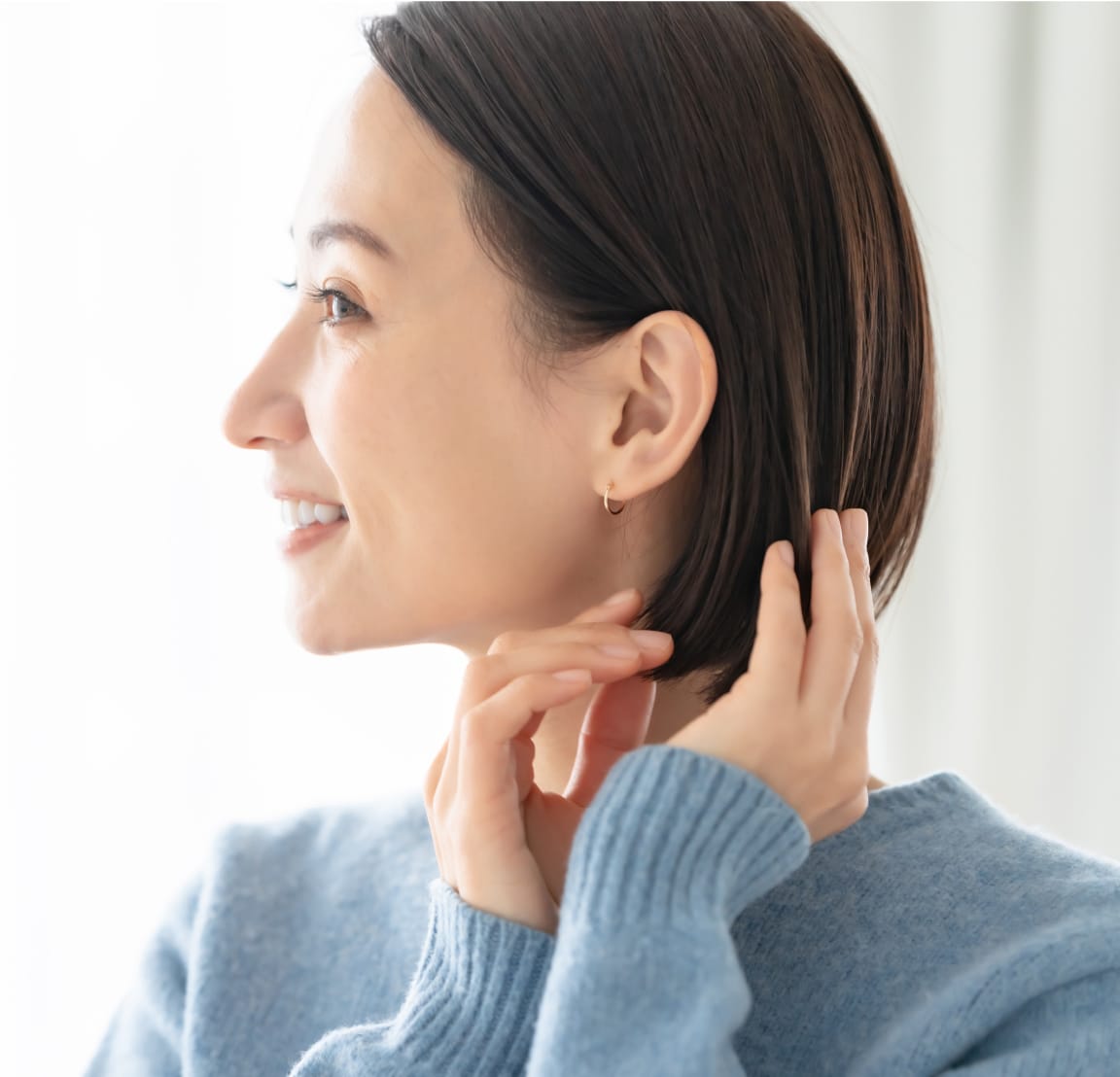 ヘアカラーと同時に髪のケアができる髪質改善ヘアカラーは、加齢で失われがちな水分とキューティクルを保持し、内部から髪を補修します。ツヤ感と色持ちがアップし、髪質改善効果も高まります。実際に9割以上のお客様に、驚きの艶感と発色の良さを実感していただいています。ブローだけで思わず触れたくなる柔らかな髪を手に入れ、まるで別人のような仕上がりを実感してください。